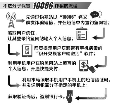 據中國移動客服人員介紹,“偽基站”可以讓收到者的短信來源顯示為10086,也可以顯示為10010、10000等其他電信運營商的號碼,甚至顯示955開頭的銀行的客服電話。