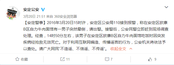 公安民警提醒您:對于利用互聯網編造、傳播謠言的行為,公安機關將依法予以查處。請廣大網民“不造謠、不信謠、不傳謠”。