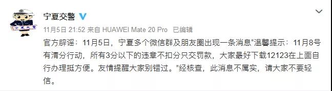 11月8日有清分行動(dòng)?寧夏交警辟謠:不實(shí)信息