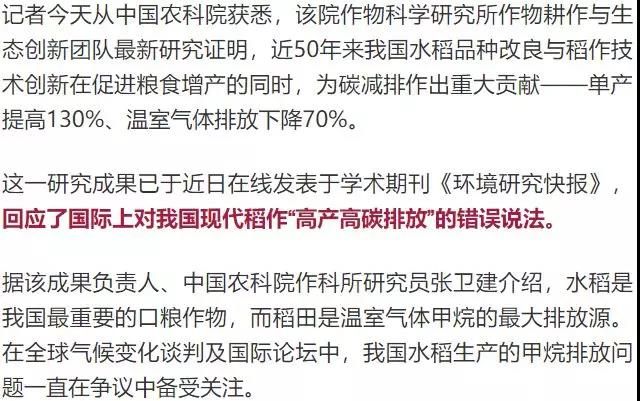 我國高產(chǎn)水稻高碳排放?用數(shù)據(jù)“打臉”偏見!