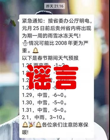 而且這條謠言的消息只有時間和粗略的天氣現象,并不符合正規消息格式。且貴州省有17.6167萬平方公里,素有“一山有四季、十里不同天”之稱,不可能全省氣溫都一樣,這條消息很明顯是謠言。