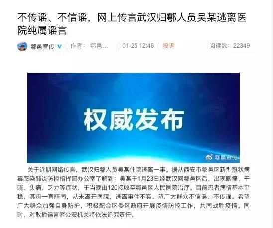 關(guān)于近期網(wǎng)絡(luò)傳言,武漢歸鄠?cè)藛T吳某住院逃離一事。